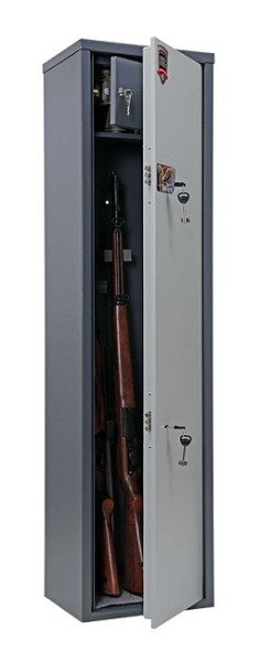 Сейф AIKO Беркут-143 предназначены для хранения огнестрельного оружия. Соответствуют требованиям ст.59. Постановления правительства РФ № 814 от 21 июля 1998 года "О мерах по регулированию гражданского и служебного оружия и патронов к нему на территории РФ". Сейф изготовлен из металла толщиной 2 мм. Вместимость - 4 ствола. Максимальная высота ствола - 1370 мм. Оборудован патронным отделением, запирающимся на ключ, ложементами для ружей, ковриком. Размер патронного отделения (ВхШхГ) 199х356х118 мм. Внутренние размеры сейфа (ВхШхГ) 1378/1178*х356х234 мм. Закрывается двумя ключевыми замками. Дополнительная опция: заказ сейфа с биометрическим кодовым замком. Цвет: графит. Тип покрытия порошковое.
