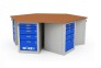 Дополнительно на верстак можно установить: перфорированный экран, экран перфорированный с роллетой, аксессуары на экран, комплект колес. Также возможно установить другой вид столешницы (F40, Т34, В40, R34, N31, C30), выбрать другую комплектацию тумб (с ящиком и дверью, с 4 выдвижными ящиками, с 5 выдвижными ящиками или тумба без ящиков), установить регулируемую опору.