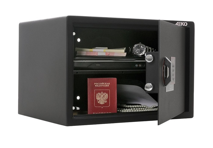 Вместительный сейф AIKO SH-30 EL от производителя ПРОМЕТ хоть и является по своему назначению гостиничным или сейфом для отелей, но тем не менее предназначен для хранения документов и небольшого количества ценностей в гостиничных номерах, но также часто используется дома и в офисе. В нем также можно хранить небольшие суммы наличных средств и их эквиваленты. Толщина лицевой панели в модели AIKO SH-30 EL составляет 2.8 миллиметра, а толщина боковых стенок без малого 1.2 миллиметра, что является весьма неплохим показателем для сейфа гостиничного назначения. Модель комплектуется полкой, что позволяет разграничить место в хранилище и удобно разделить вещи. Закрывается сейф кодовым электронным замком PLS-2 с аварийным мастер-ключом, а сам замок работает от 4 штук батареек типа ААА, он оснащен световым и звуковым индикатором для дополнительного удобства. Цвет сейфа - черный структурированный, немаркий и незаметный, что прибавит уверенности в сохранности и сделает ежедневное использование приятным и беспроблемным. Купить гостиничный сейф AIKO SH-30 EL от производителя ПРОМЕТ в наличии с доставкой или под заказ самовывозом из ближайшей точки выдачи можно всегда в интернет-магазине компании "Мир сейфов". У нас есть все, что надо - профессиональный подбор товара, гарантия производителя, выгодные цены и скидки при оплате банковской картой на сайте.