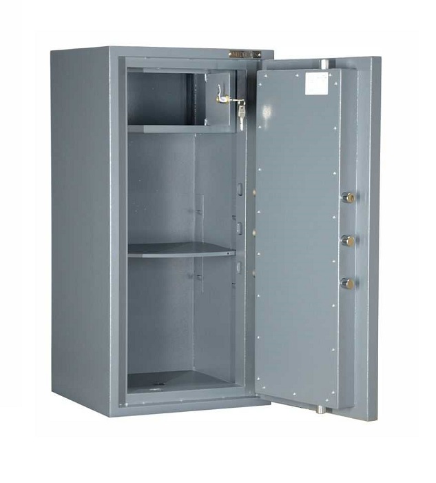 СМ2-90 предназначен для обеспечения сохранности ценностей и предотвращения несанкционированного доступа к ним. ГОСТ Р 50862-2017 (п.4.1, табл. 1), ГОСТ Р 51113-97 (разд. 4). Класс устойчивости к взлому-II (второй). Класс огнестойкости 60Б. Рекомендованная сумма хранения денег для физических лиц до 3 000 000 руб, для юридических лиц до 800 000 руб. Сейф изготовлен из стали методом лазерной резки. В двери сейфа установлен ключевой замок (А класса) с 3х сторонней ригельной системой запирания. Ригели диаметром 24 мм с защитой от высверливания и выбивания, способные выдержать высокие нагрузки возникающие при попытке несанкционированного открывания двери. Сейф комплектуется съемной полкой и анкерными болтами для крепления к полу и стене. Цвет серый